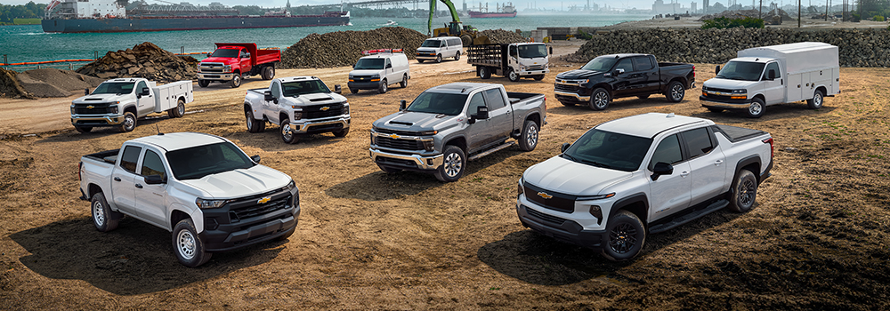 Work trucks handle demanding jobs for public works, utilities, construction crews and trade contractors. Holz offers pickups, chassis cabs and work-ready bodies configured for towing, hauling, plowing and field service.
